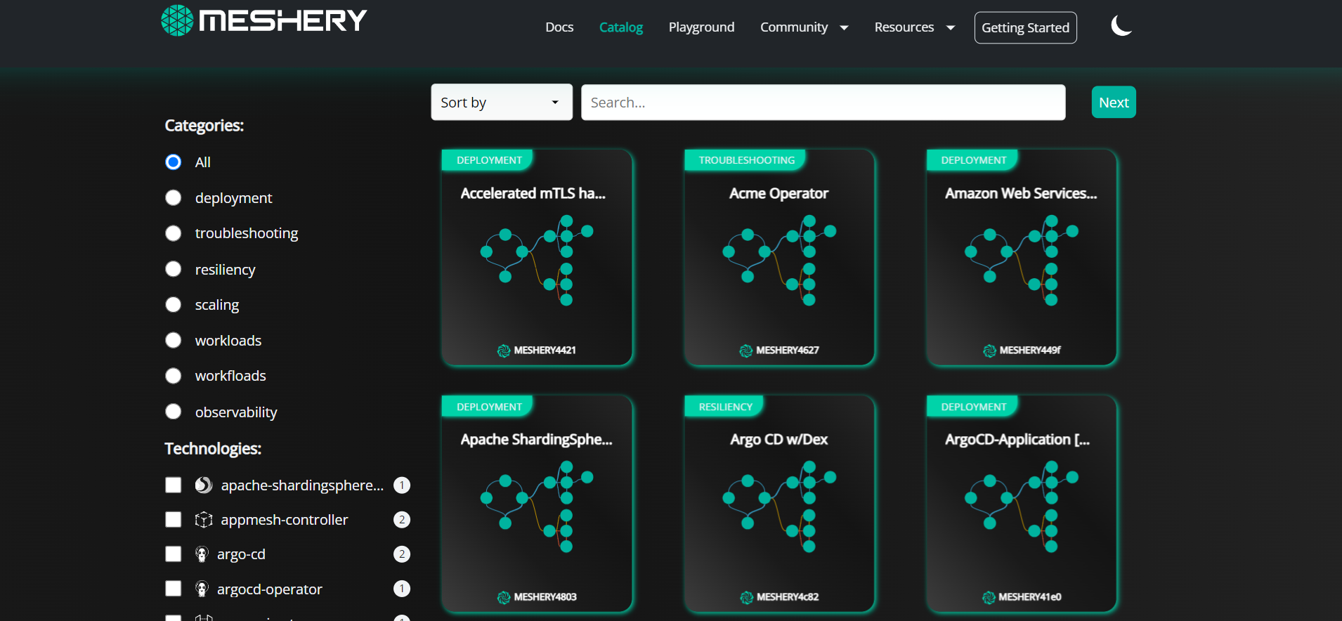 Overall, Meshery Catalog plays a vital role in simplifying the management and deployment of cloud-native infrastructure. By providing a user-friendly marketplace-like experience and encouraging collaboration, it empowers organizations to efficiently build and optimize their cloud-native environments.